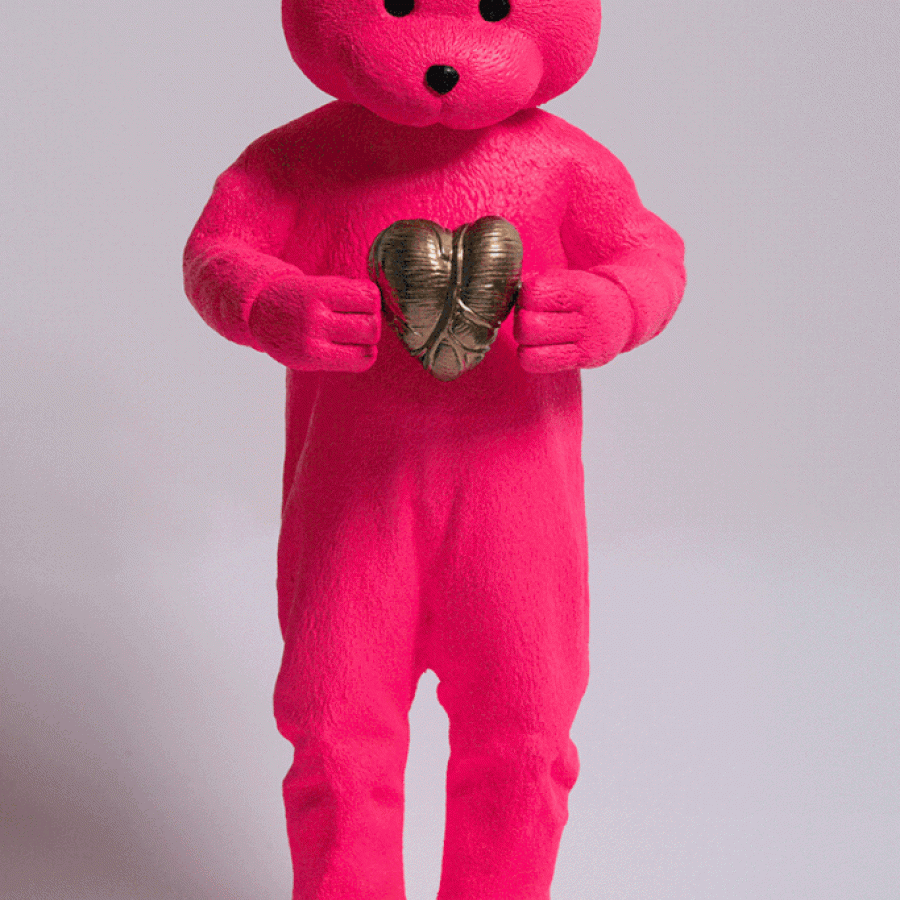In his debut solo exhibition with Andipa Gallery titled ‘A Hero’s Journey’, New Contemporary artist Paul Robinson produces a vivid collection of paintings, photography and unique prints telling the fantastical story of alter ego Pink Bear.