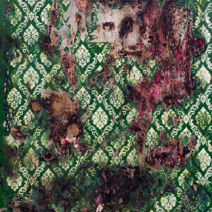 'Decadence' examines and celebrates corroded patterned surfaces. Fundamental to this project is the appropriated wallpaper pattern. Through a process of digital reconstruction, I recreated the repetitive pattern which decorated my childhood living room for almost twenty-five years. I then replicated the pattern onto carefully selected surfaces through controlled experiments. These were carried out over unregulated durations of time, using a variety of materials, methods, catalysts and utensils. I describe the practice as 'artificial decay', as repeating factors affect the work, much like seasonal elements would affect a surface naturally.