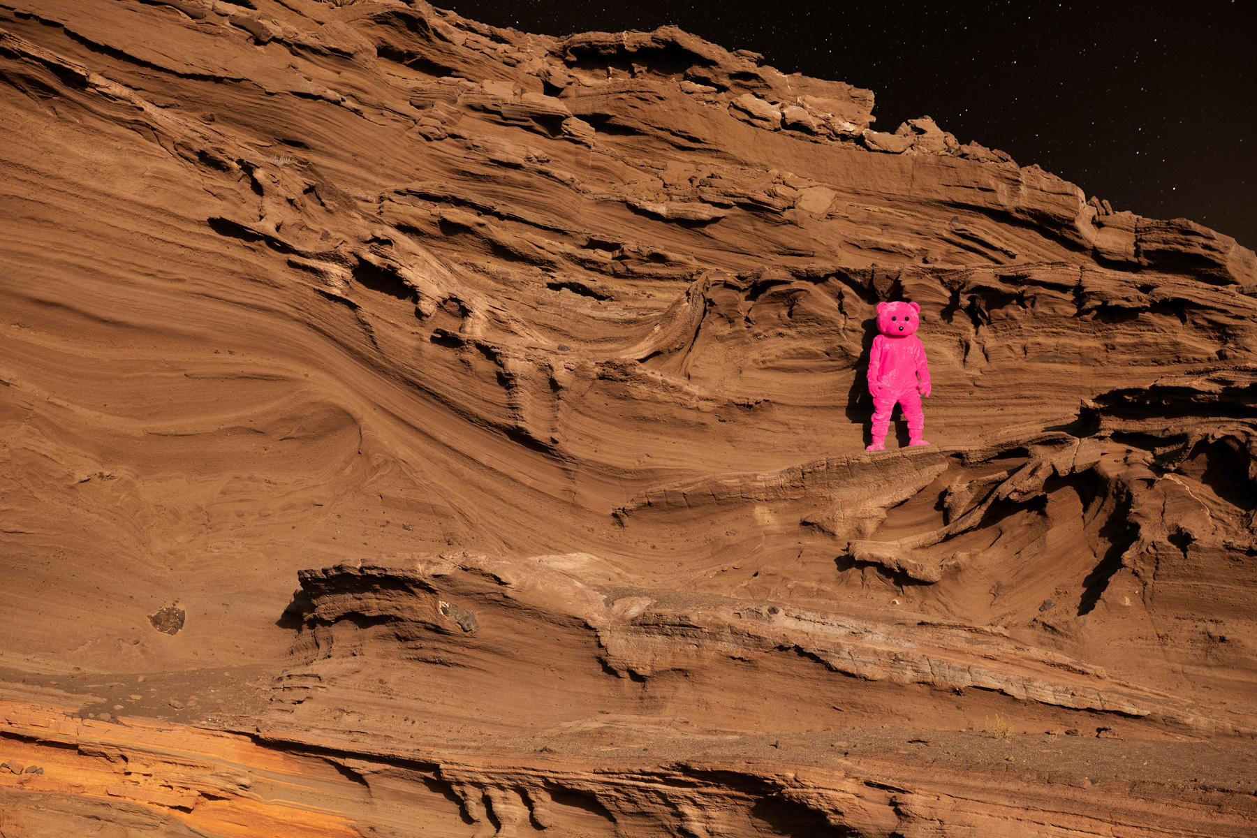 Travel, nature and camaraderie liberated me and inundated my being with positivity. I had reconnected to the natural world which I had so bitterly mourned as a child. This time though, I couldn’t let that proverbial tree be chopped down, and I was filled with the desire and need to show our beautiful planet and home. The Pink Bear decided, thus, that “he used to be a polar bear,” a climate refugee seeking out beauty with which to inspire humans, and inspire them to protect and value what he had lost, their home. Perhaps for them it may not be too late.