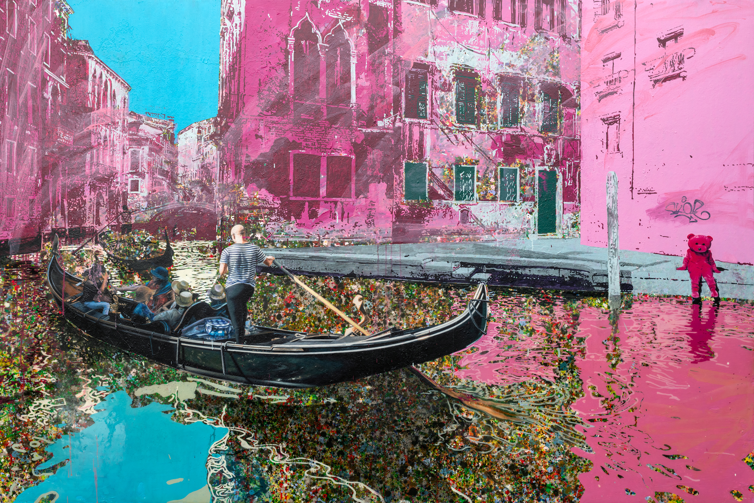 Pink Bear Is Coming To Town, 2019, Oil, Acrylic and Resin on Canvas, 183cm x 124cm, Painting