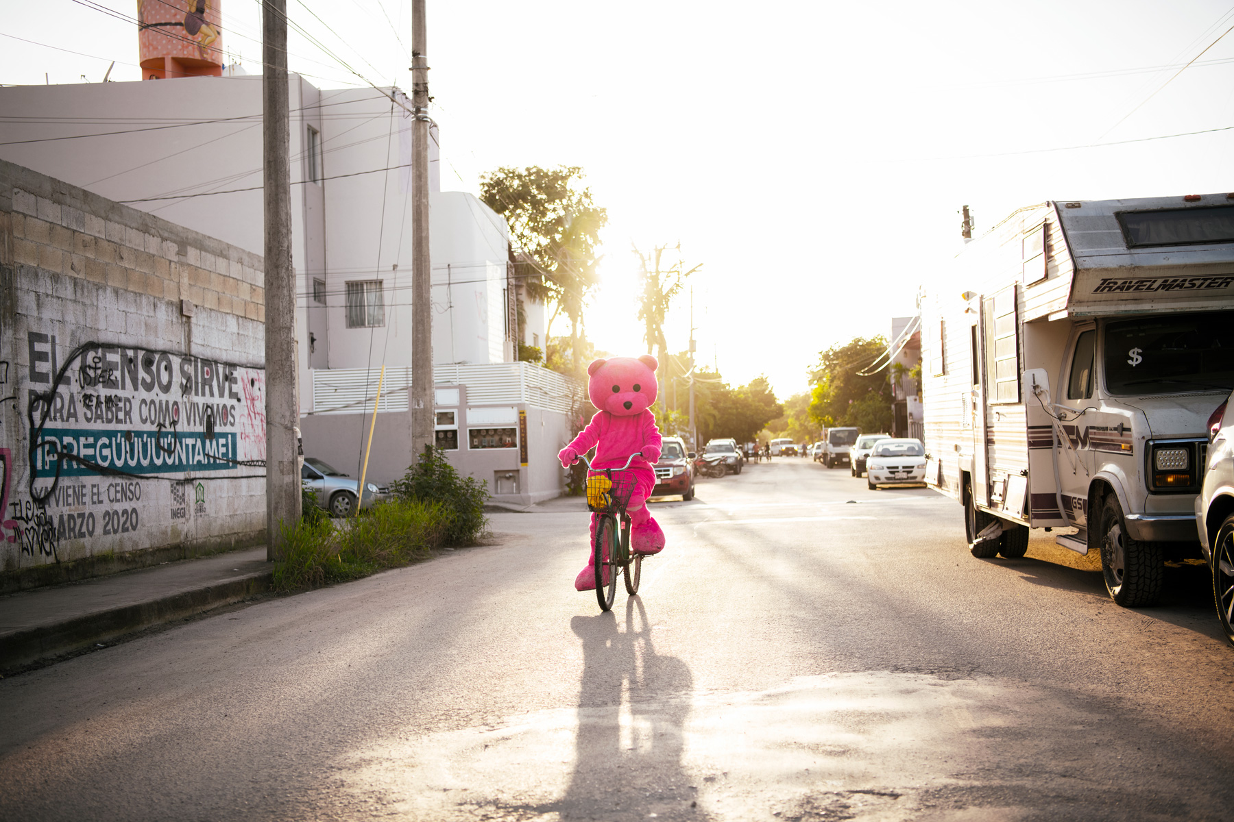 Read more about 'Pink Bear Is Coming To Town' Travel Master Pink Bear Is Coming To Town, 2021, Giclee, 60cm x 40cm, Photography Pink Bear Is Coming To Town View 'Pink Bear Is Coming To Town' series