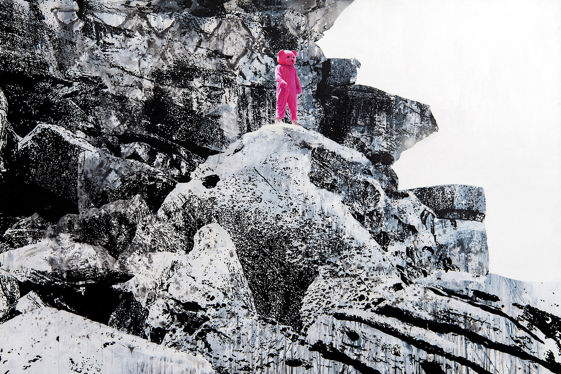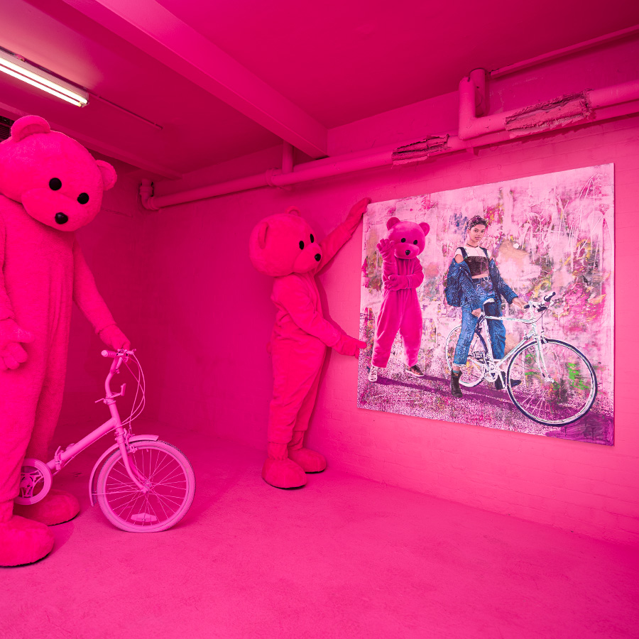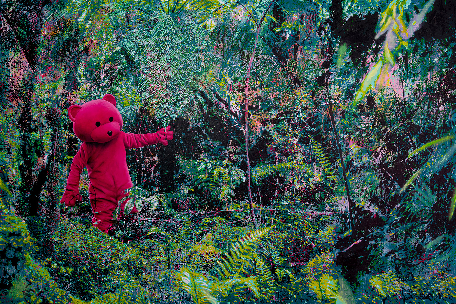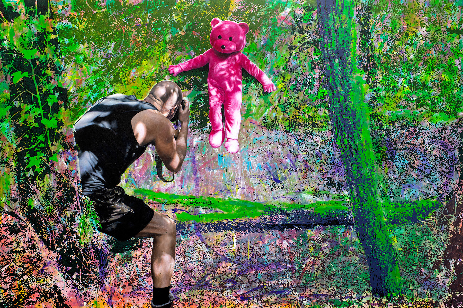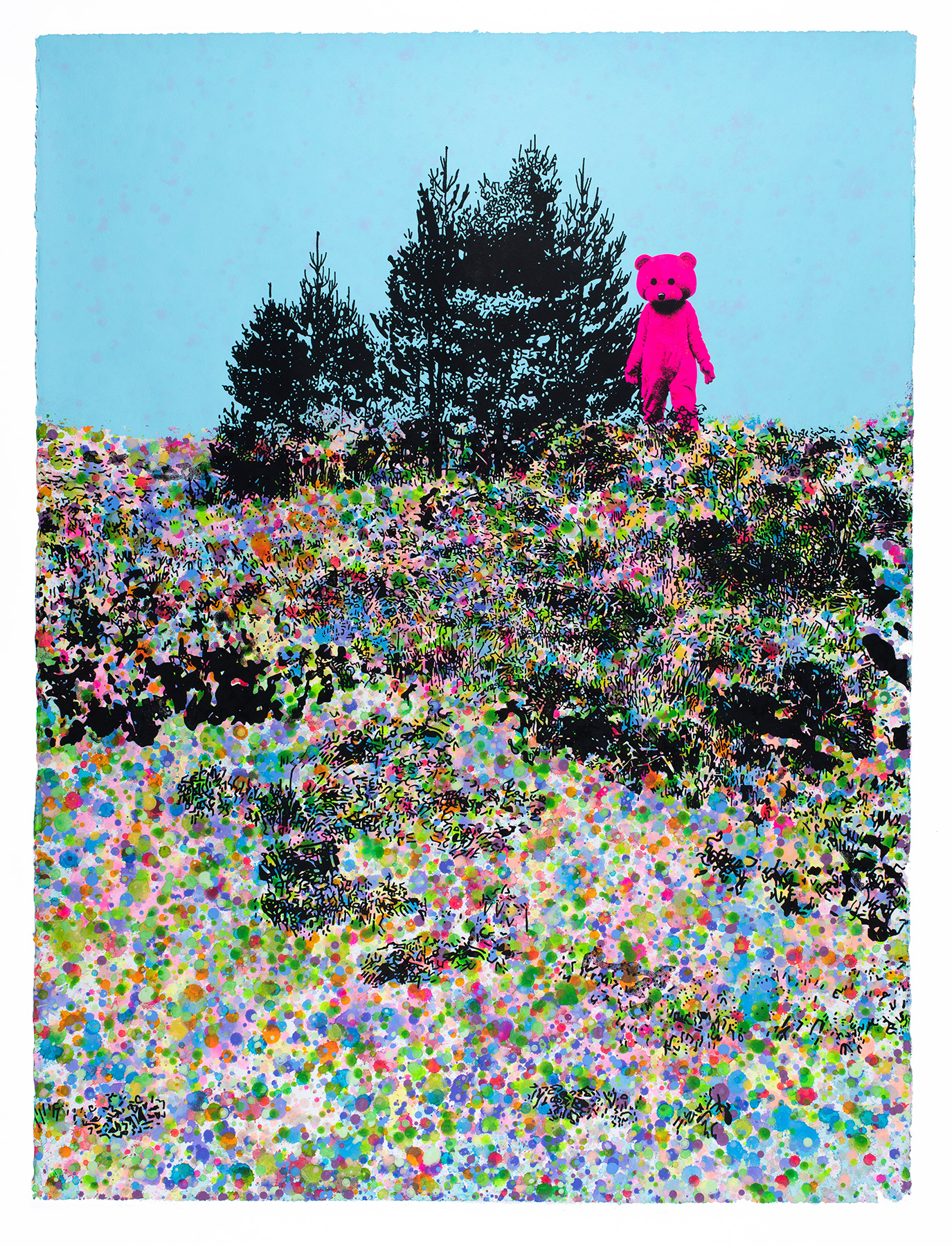 In his debut solo exhibition with Andipa Gallery titled ‘A Hero’s Journey’, New Contemporary artist Paul Robinson produces a vivid collection of paintings, photography and unique prints telling the fantastical story of alter ego Pink Bear.