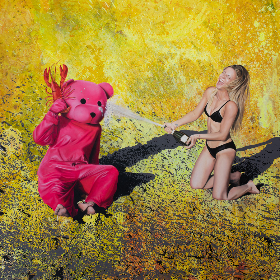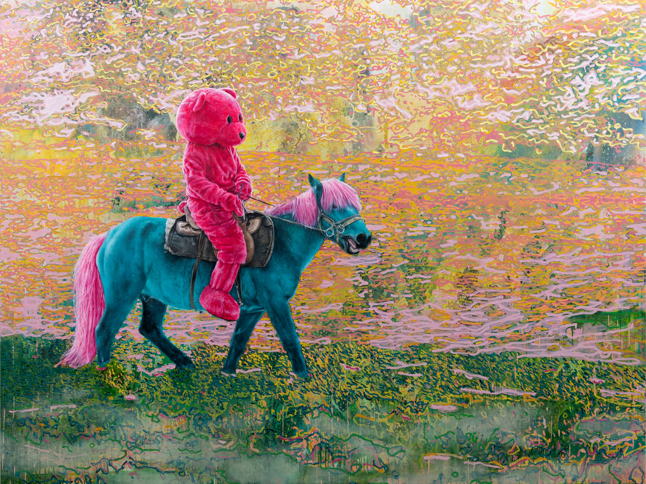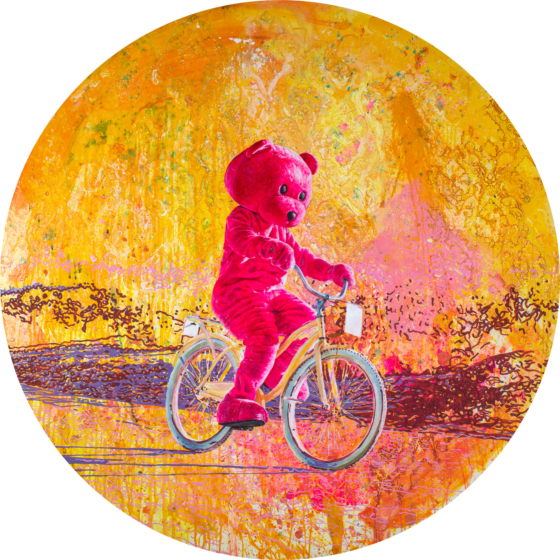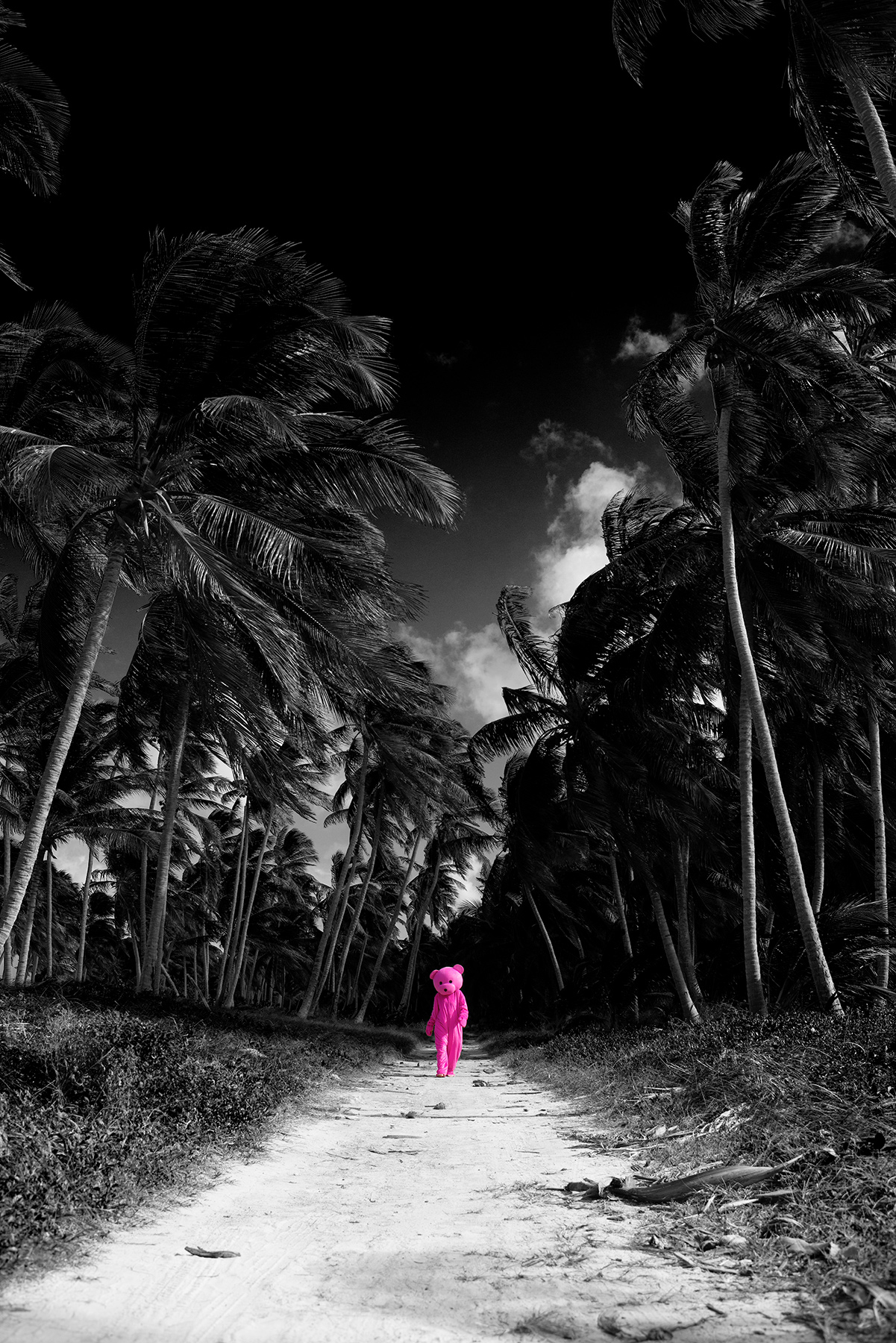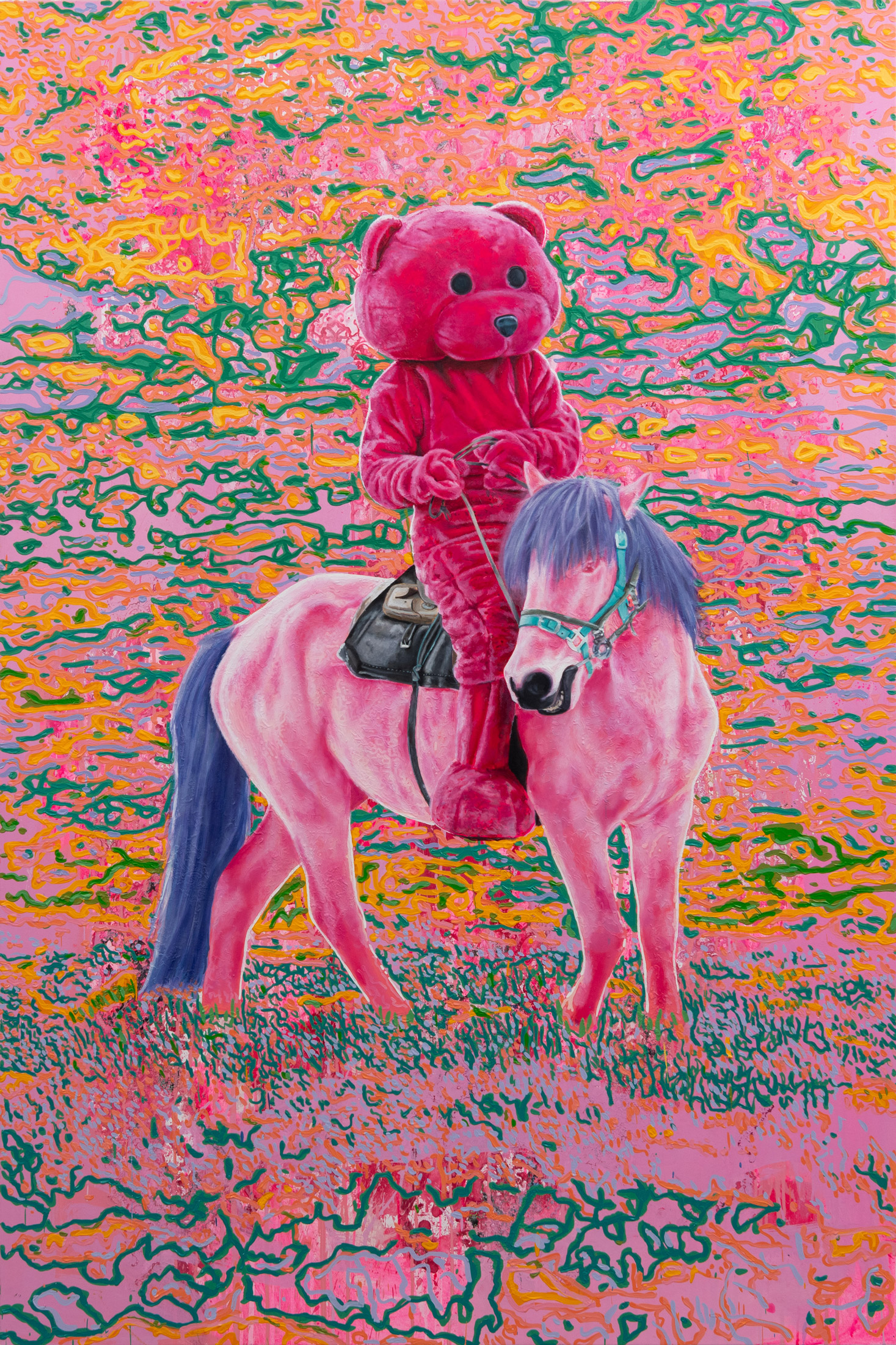 In his debut solo exhibition with Andipa Gallery titled ‘A Hero’s Journey’, New Contemporary artist Paul Robinson produces a vivid collection of paintings, photography and unique prints telling the fantastical story of alter ego Pink Bear.