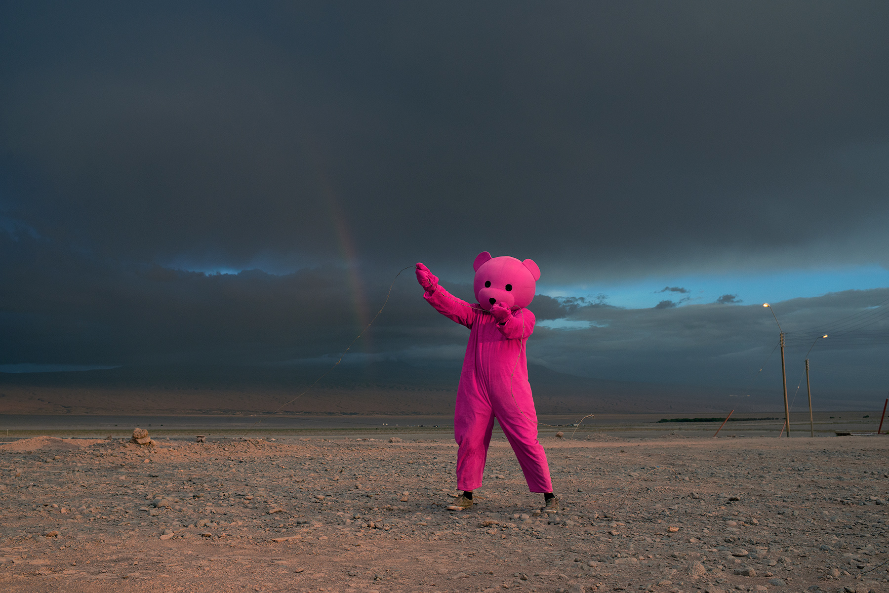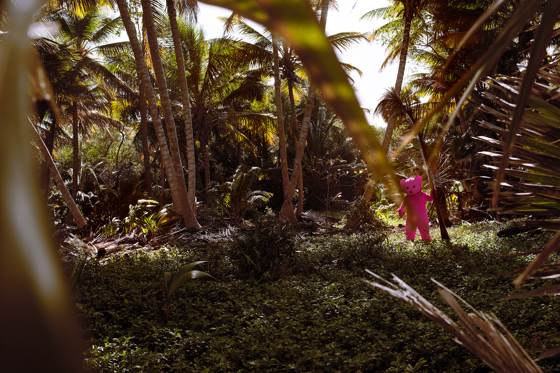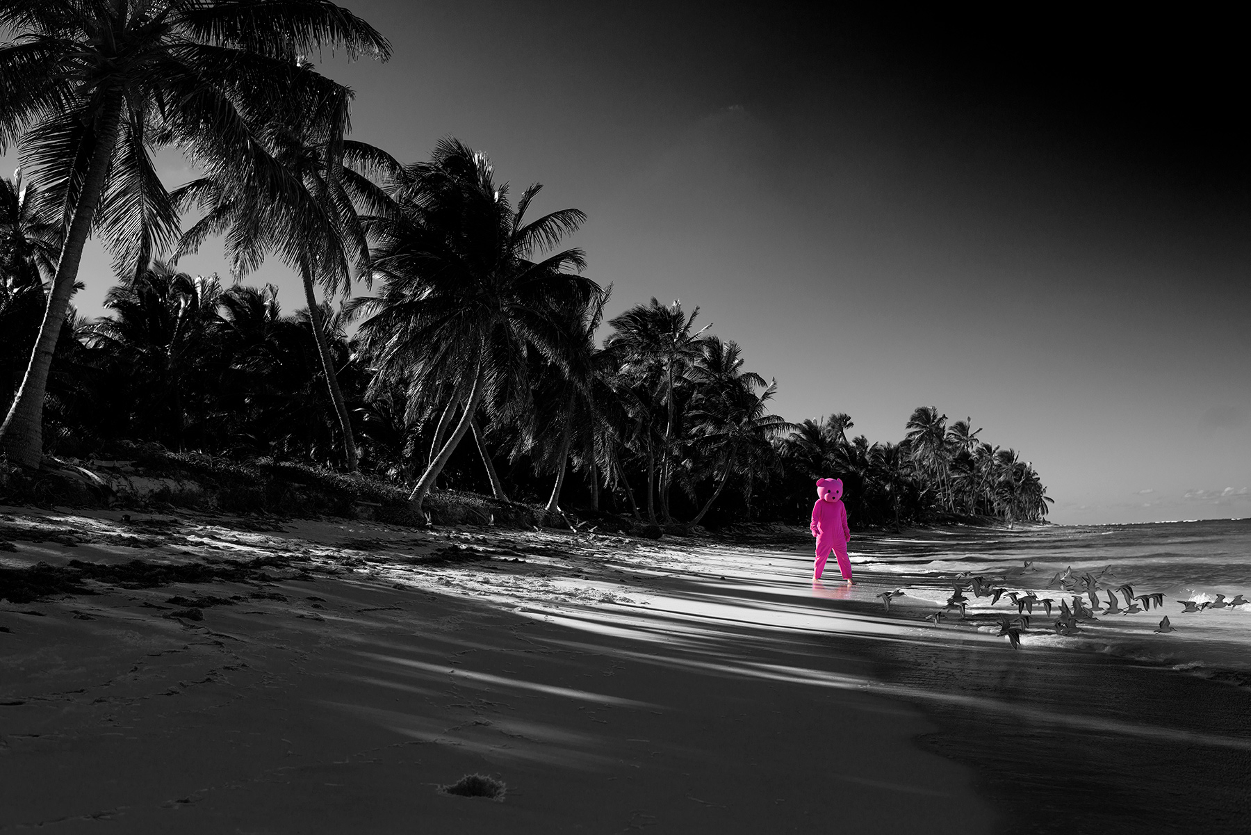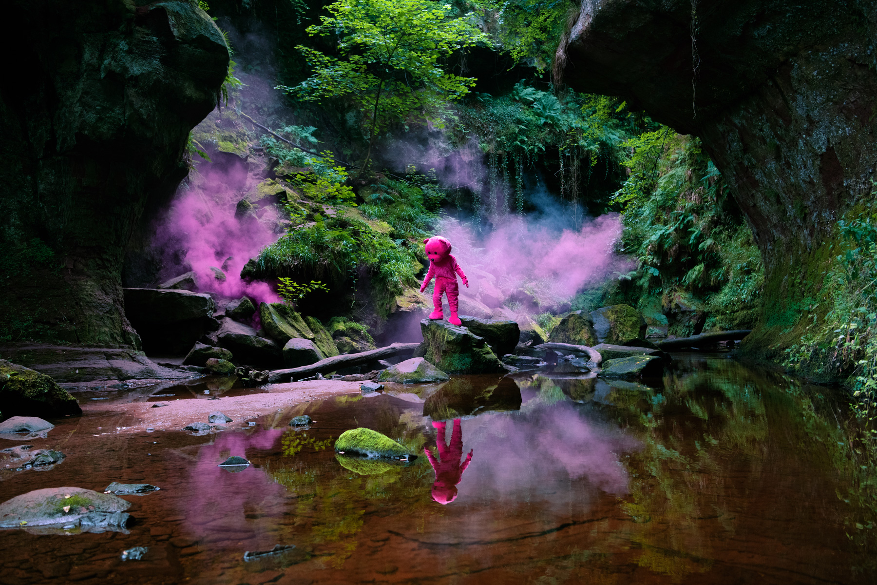In his debut solo exhibition with Andipa Gallery titled ‘A Hero’s Journey’, New Contemporary artist Paul Robinson produces a vivid collection of paintings, photography and unique prints telling the fantastical story of alter ego Pink Bear.