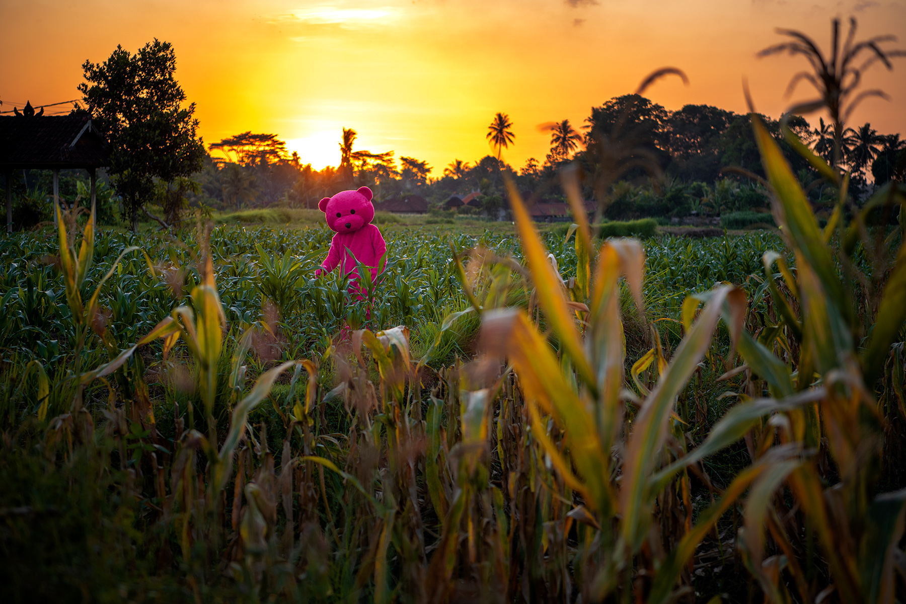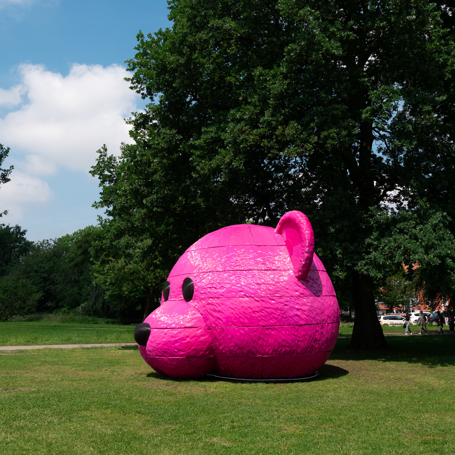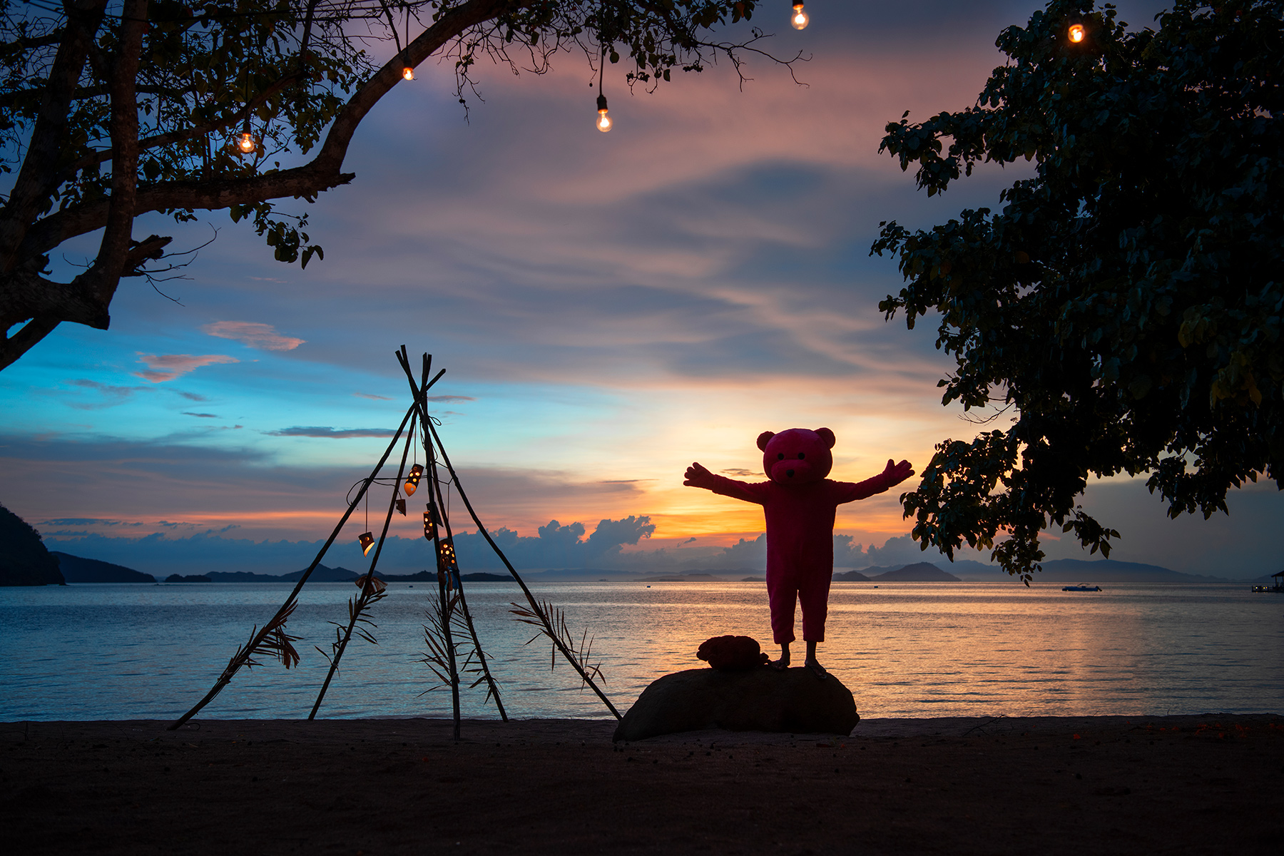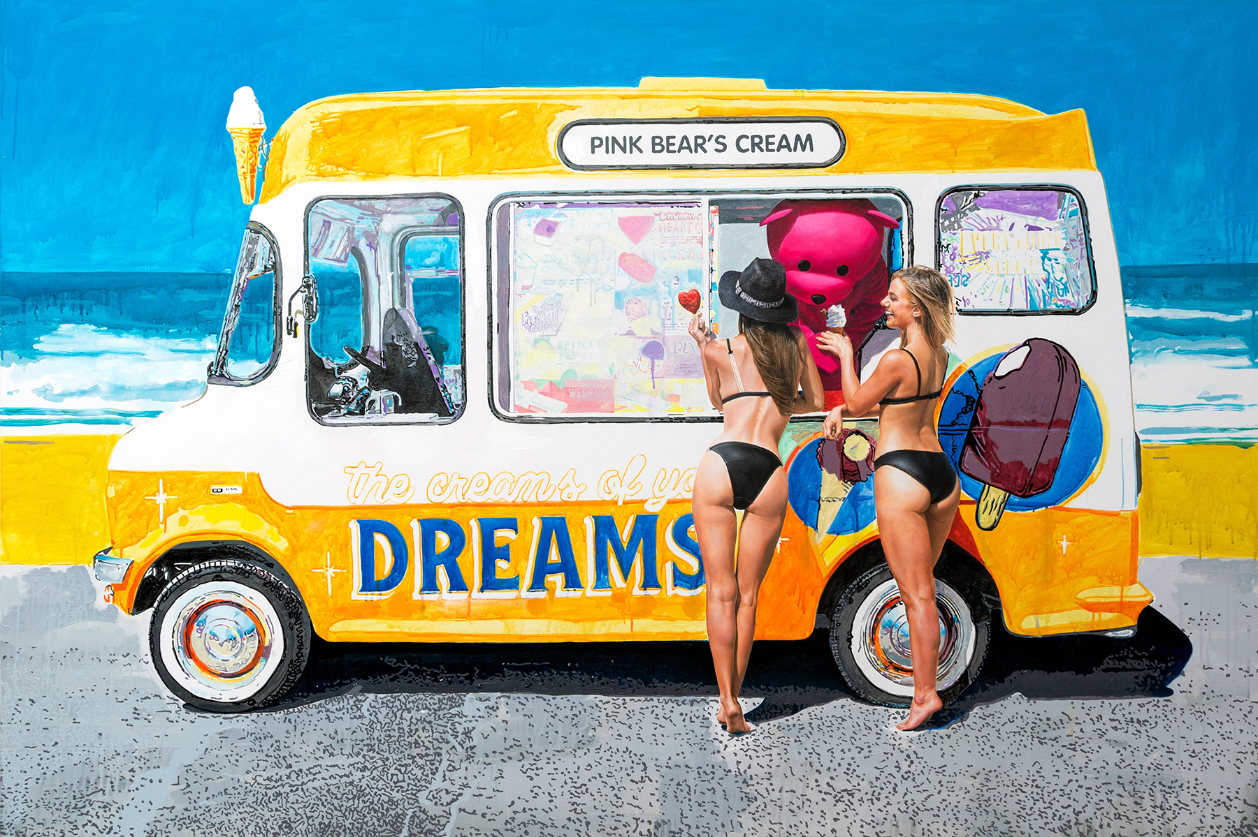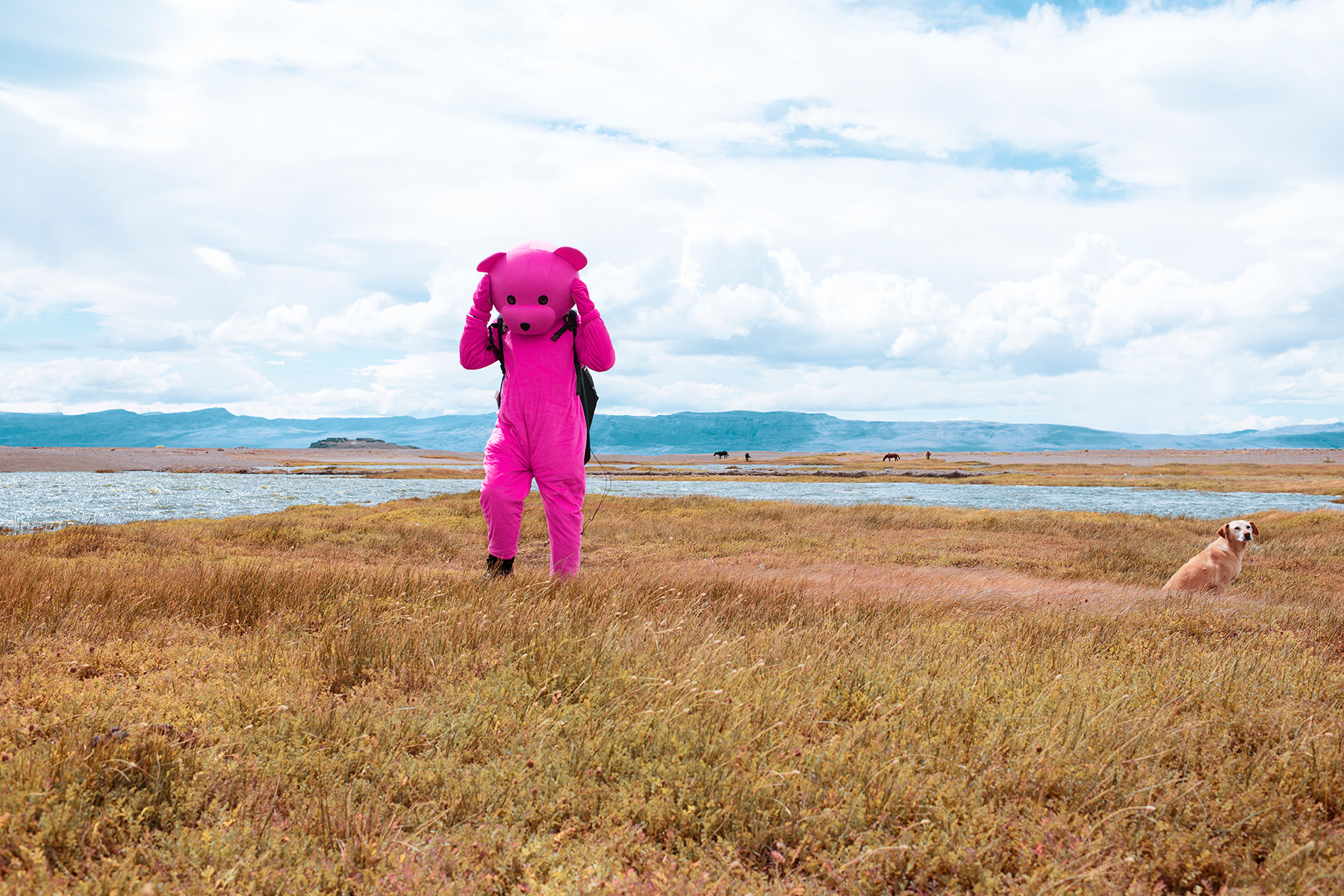 In his debut solo exhibition with Andipa Gallery titled ‘A Hero’s Journey’, New Contemporary artist Paul Robinson produces a vivid collection of paintings, photography and unique prints telling the fantastical story of alter ego Pink Bear.