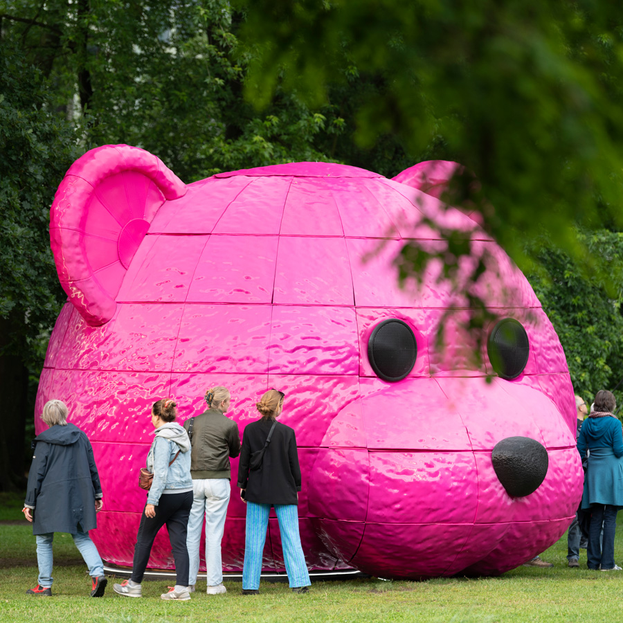 I recently submitted a proposal through Talent House to create a Pink Bear artwork for the new Moxy Ostbahnhof Hotel as part of their brand launch. My proposal was accepted and is now hanging pride of place in their lobby.