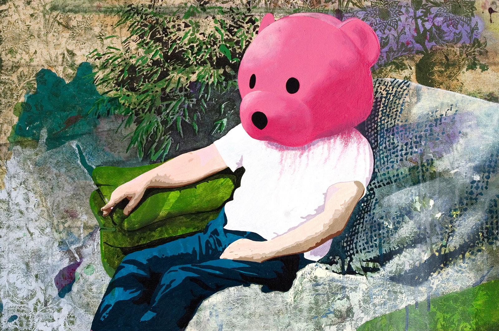 The Pink Bear’s first forages onto my canvas also took him through those dark forests, seeking love, coming across lonely, all too lost. It turns out he had to be lost first to be found, and so the figment of my childhood illuminated the darkness of my work with joy and warmth, cast as the protagonist of his story, and I of mine.