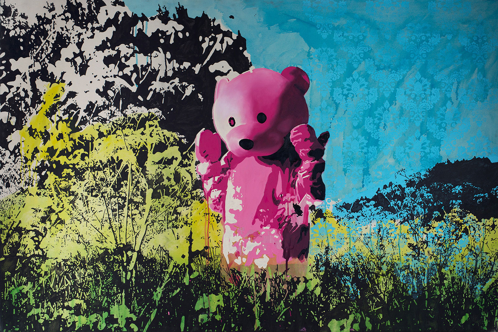 The Pink Bear’s first forages onto my canvas also took him through those dark forests, seeking love, coming across lonely, all too lost. It turns out he had to be lost first to be found, and so the figment of my childhood illuminated the darkness of my work with joy and warmth, cast as the protagonist of his story, and I of mine.