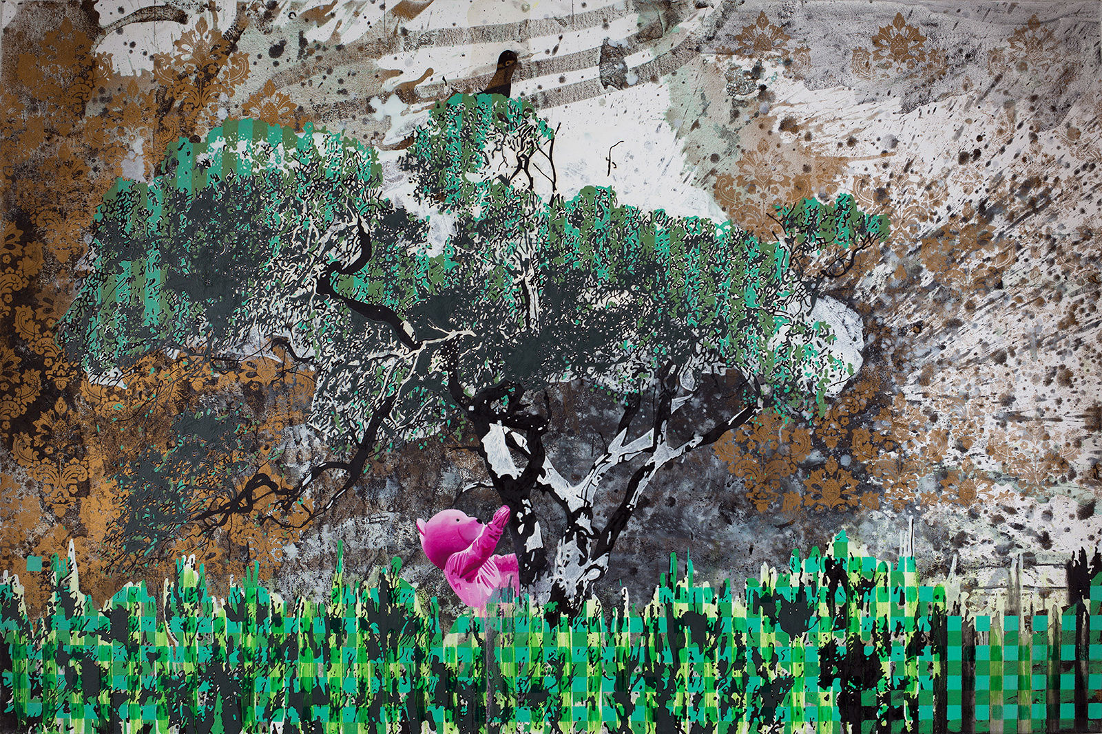 The Heroes Journey, 2011, Oil, Acrylic & Screen Print on Canvas, 184cm x 123cm, Painting
